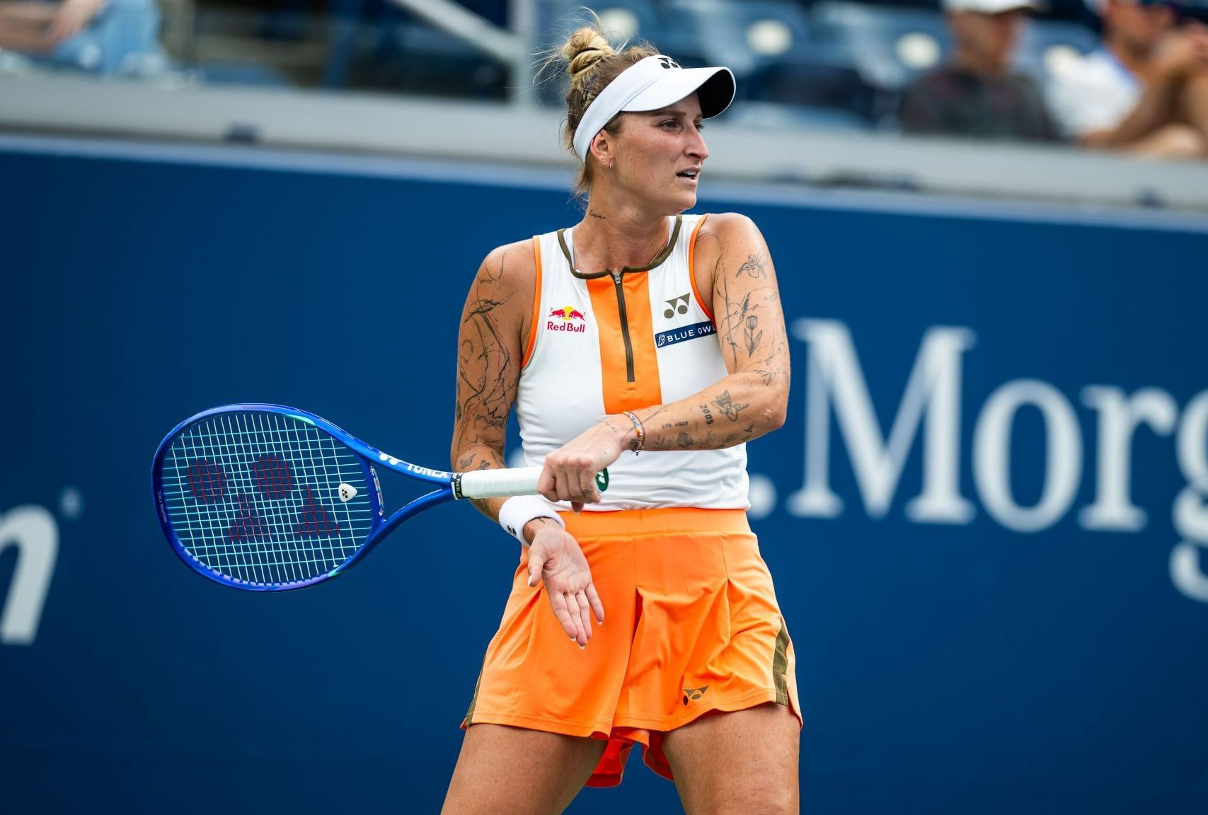Чешка Маркета Вондроушова пробилась в четвертьфинал US Open, победив в трех сетах Елену Рыбакину из Казахстана со счетом 6:4, 5:7, 6:2.
